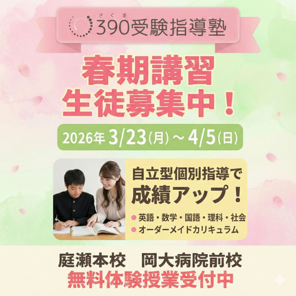390受験指導塾 庭瀬本校の2026年春期講習|新学年に向けたオーダーメイド学習